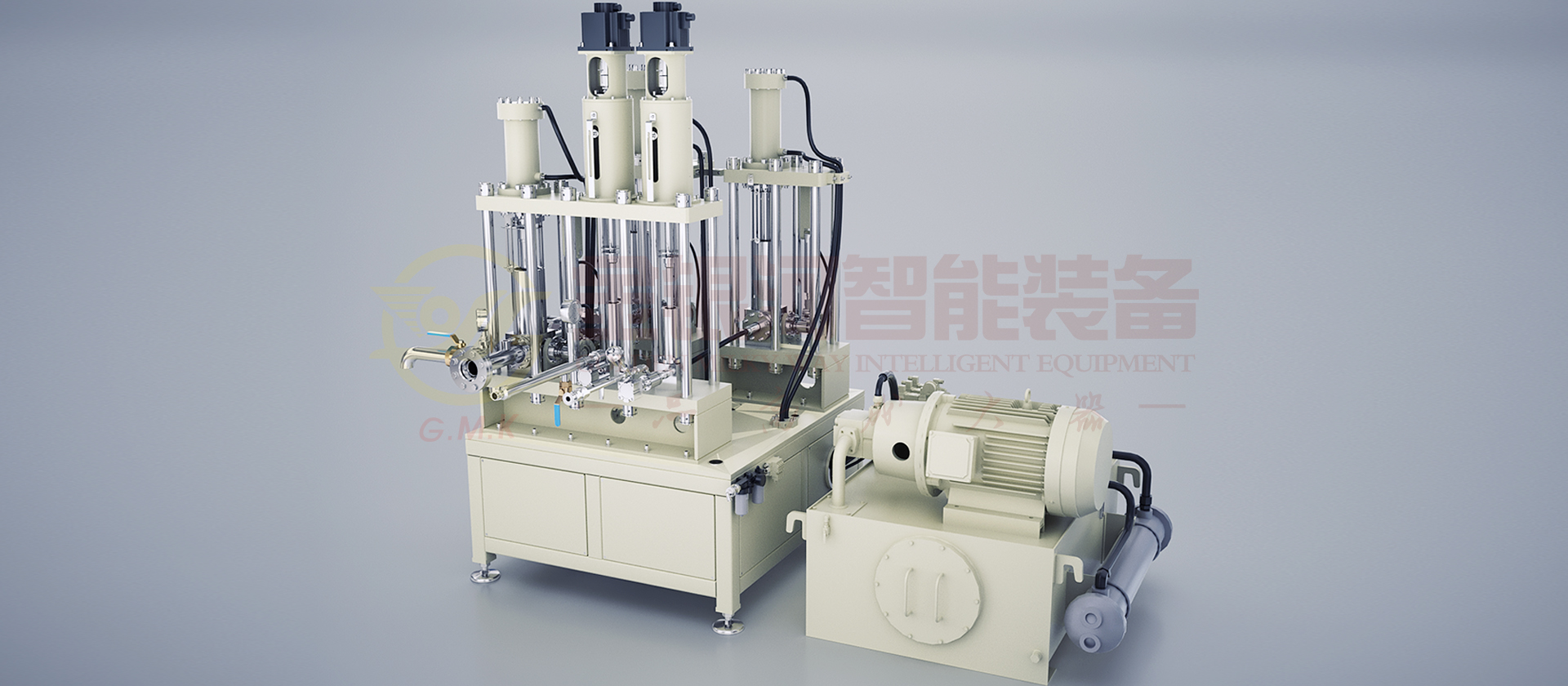 靜態混合機是由靜態混合器、液壓係統、定量計量係統、閥體、集成電控係統、氣控係統、機架等部件組成,其中靜態混合器是整套設備的核心。
